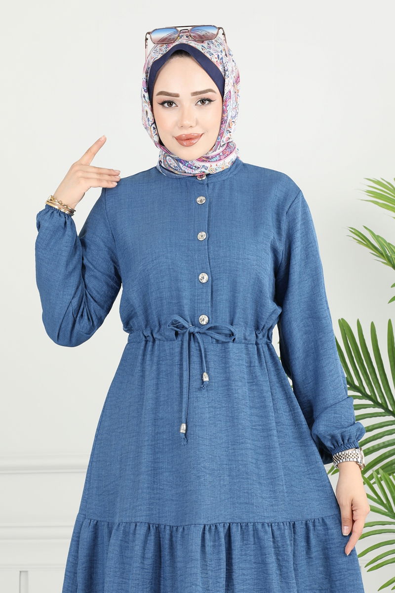 Yarım Düğmeli Elbise 024MR1078-MS İndigo