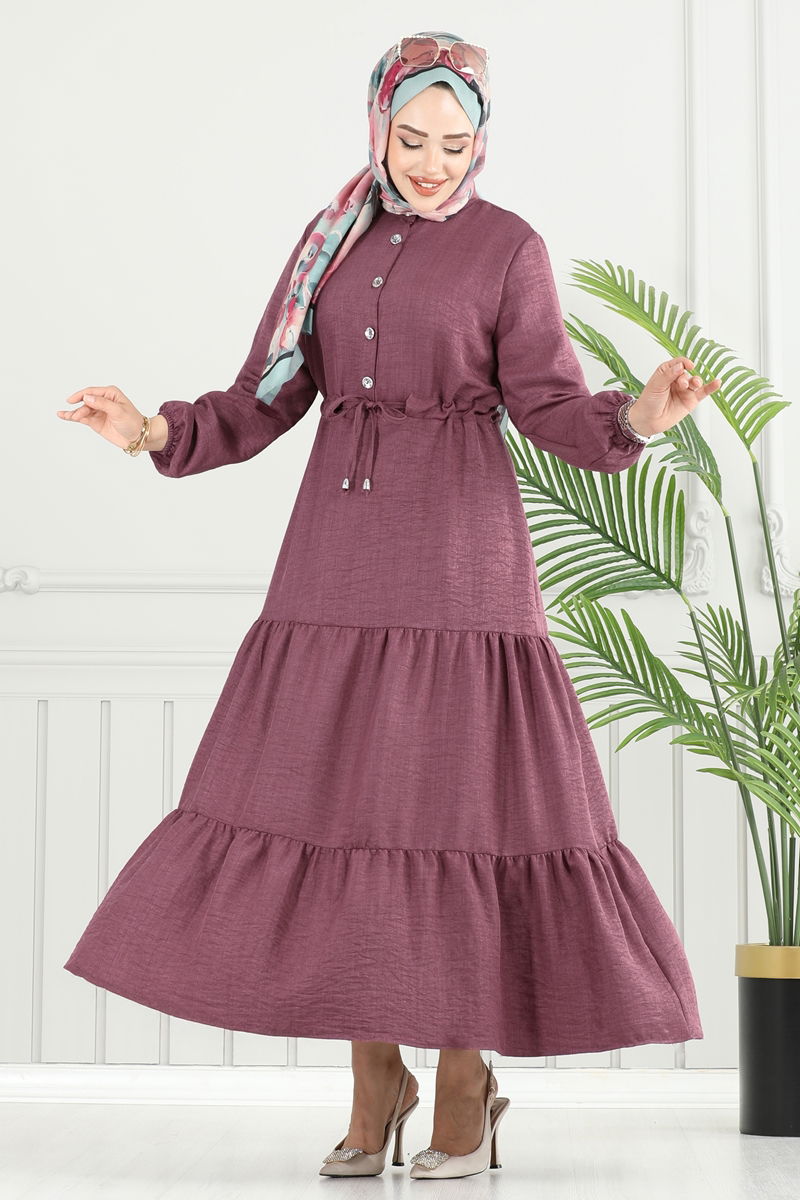 Yarım Düğmeli Elbise 024MR1078-MS Koyu Gül Kurusu