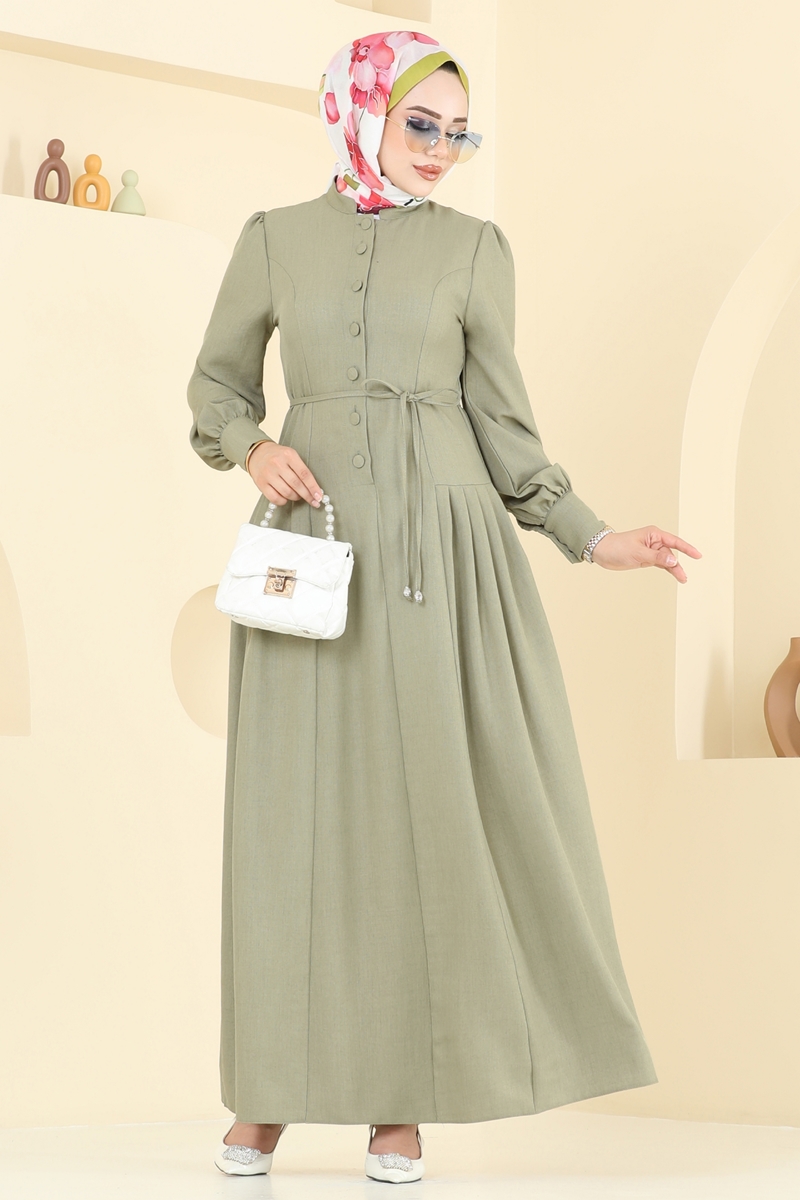 Yarım Düğmeli Sofia Elbise 2705SL432-MS Çağla