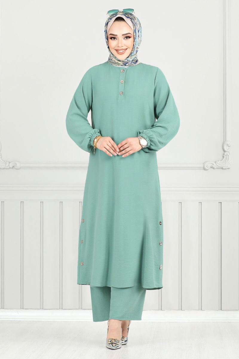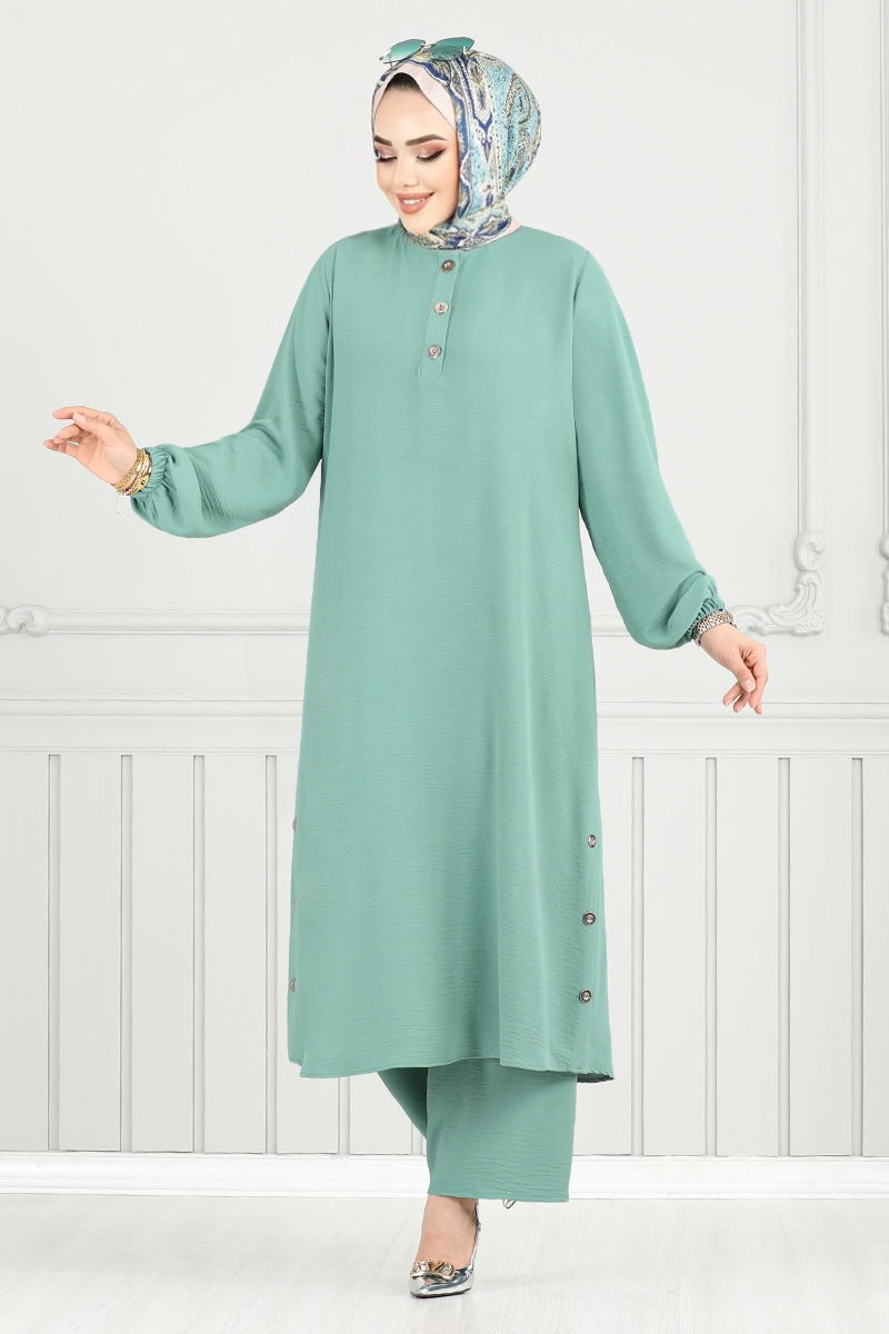 • Yarım Düğmeli Tesettür Takım Açık Mint