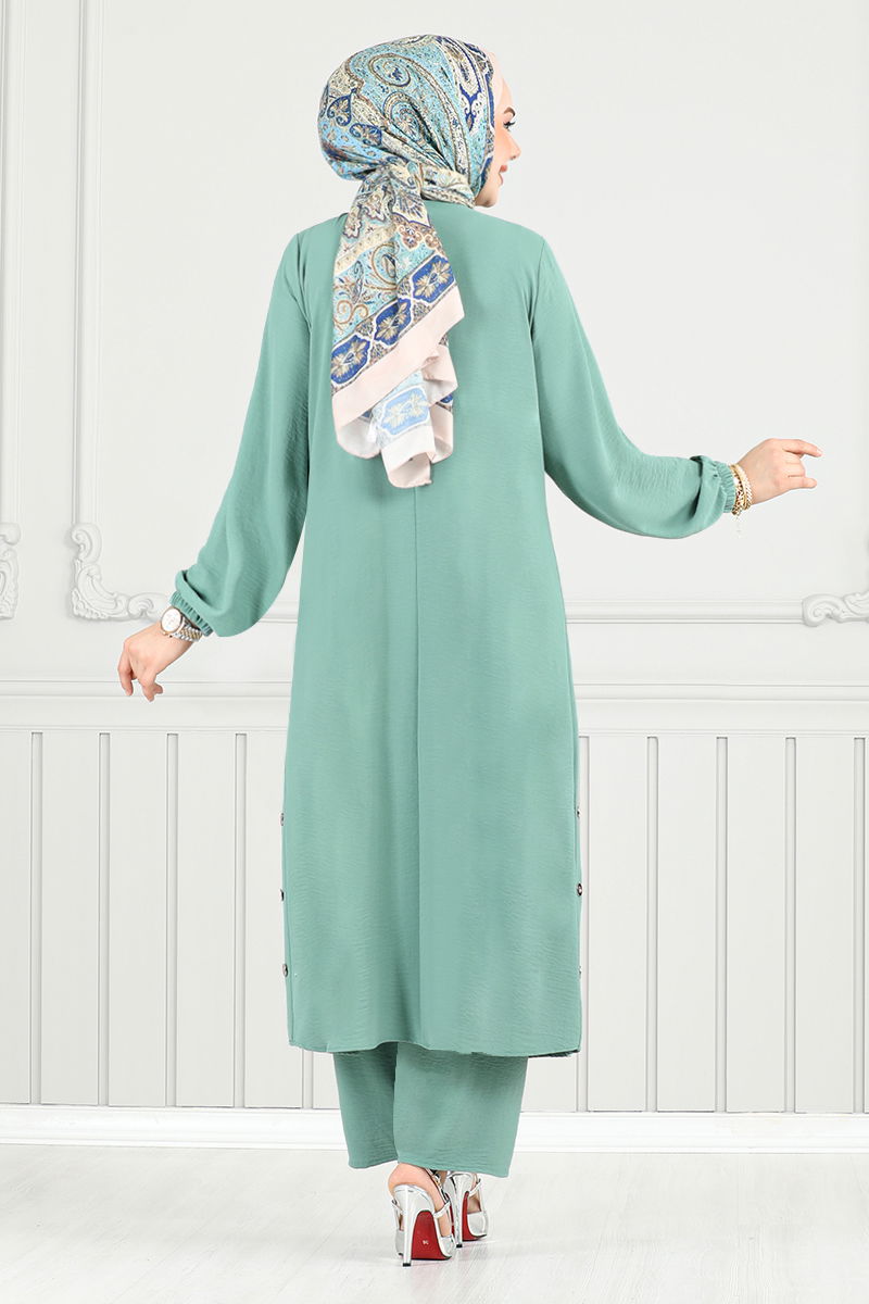 Yarım Düğmeli Tesettür Takım 015MR1077-M Açık Mint