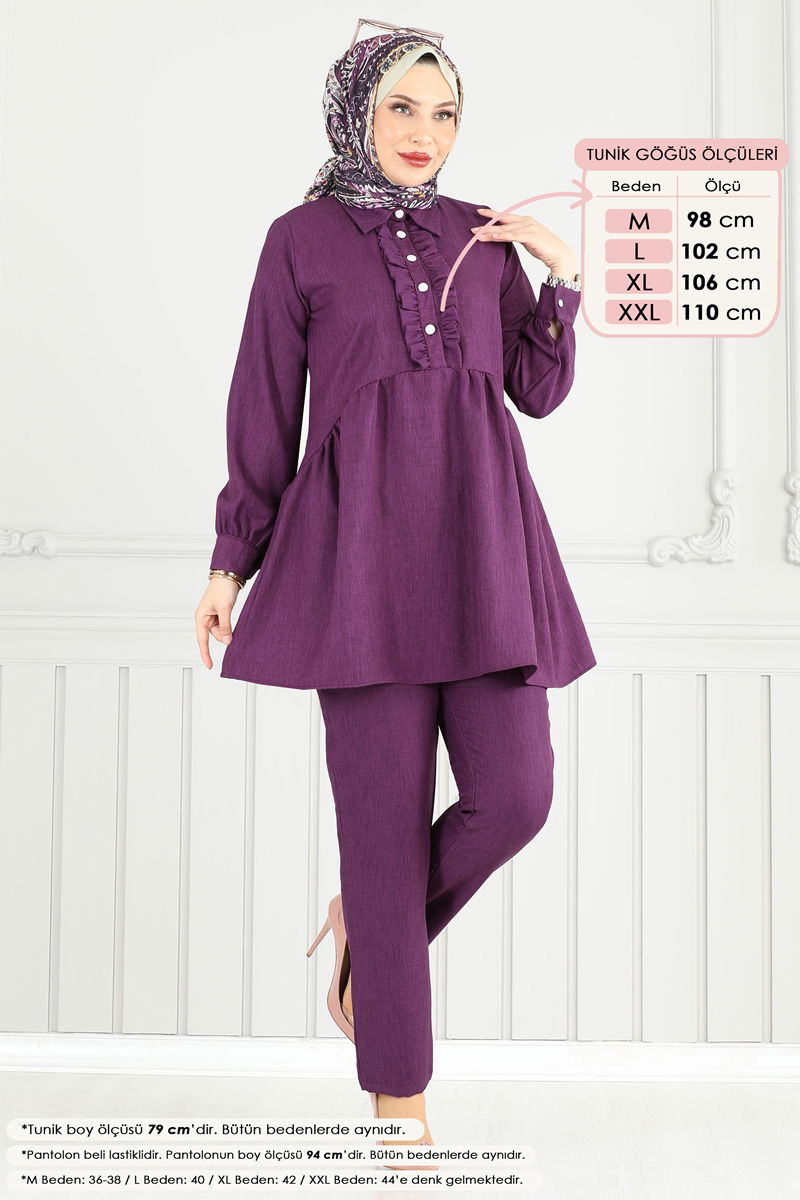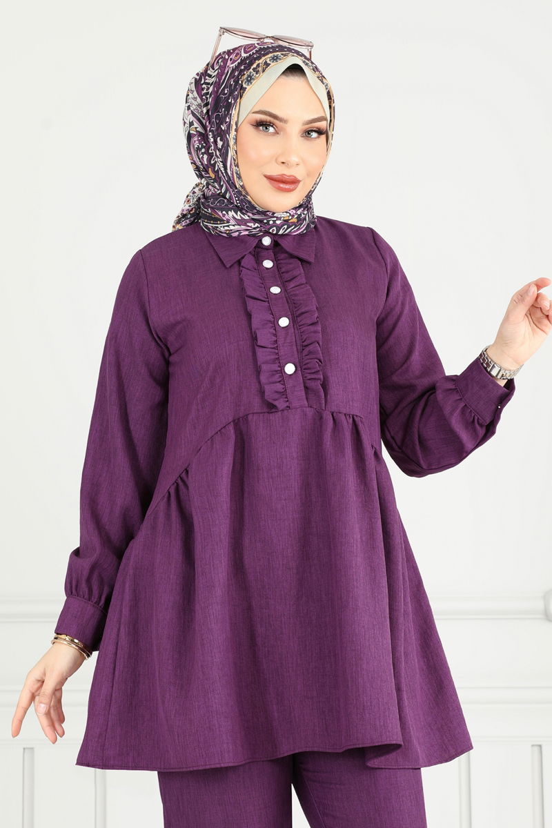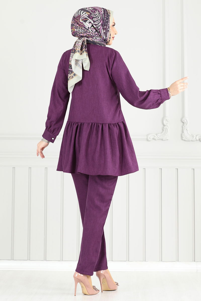 Yarım Düğmeli Tesettür Takım 6093TEG847-MS Mor