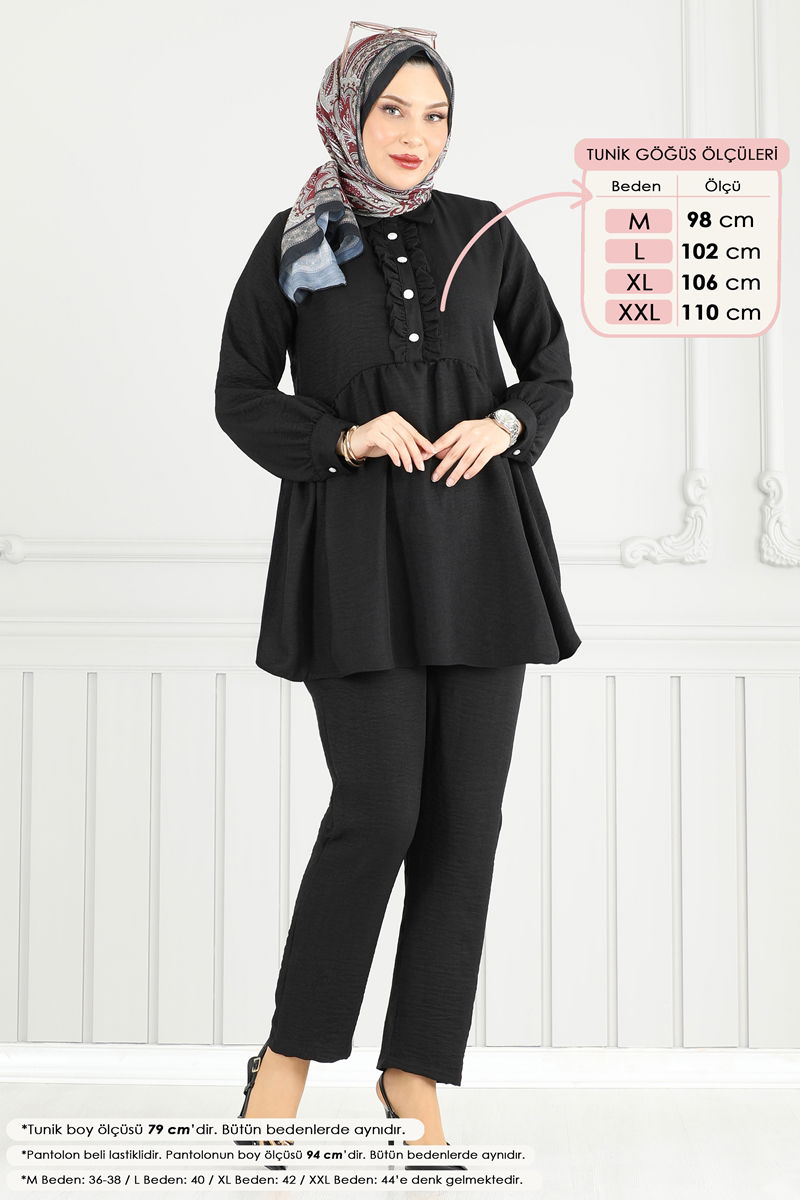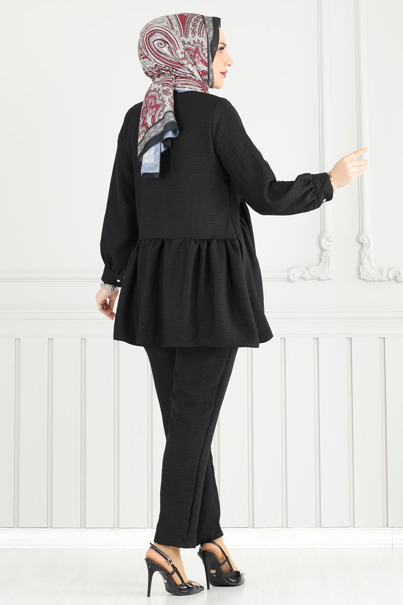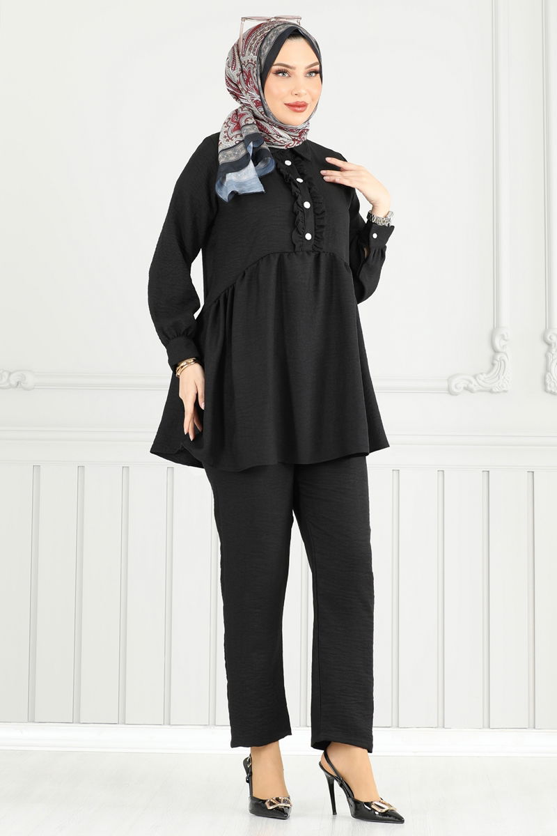 Yarım Düğmeli Tesettür Takım 6093TEG847-MS Siyah