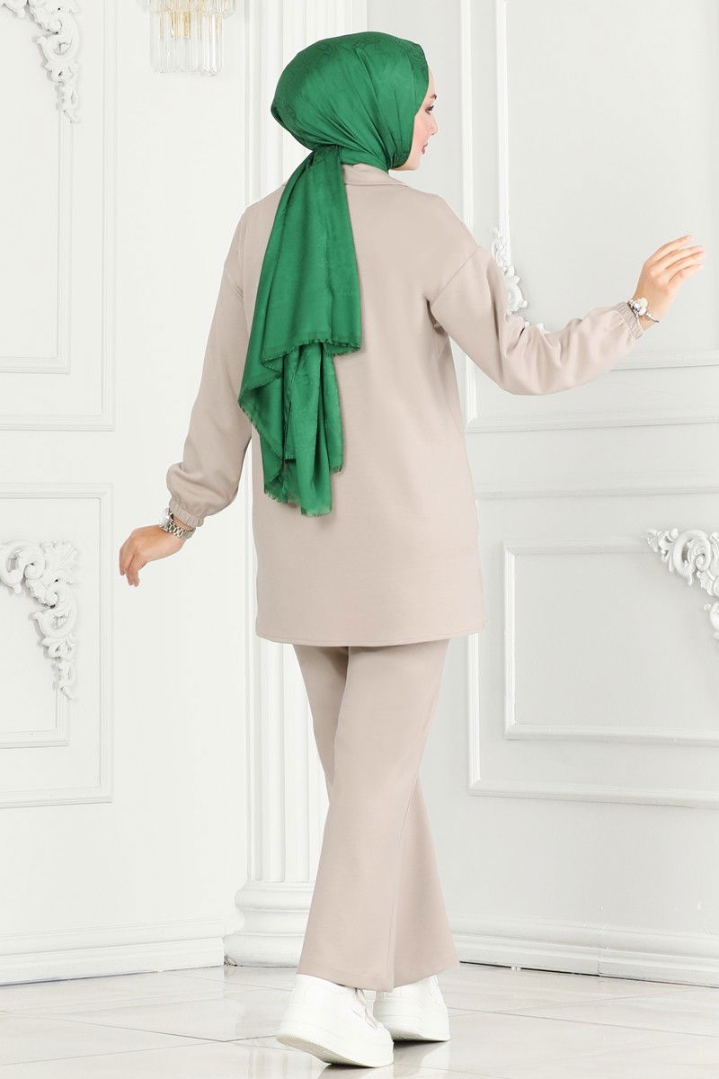 Açık Taş Rengi Yarım Fermuarlı Modal Kumaş Takım
