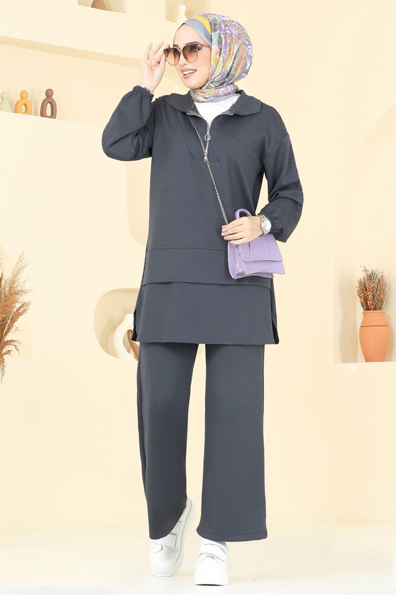 Yarım Fermuarlı Modal Kumaş Takım 5017HBS856-MS Antrasit