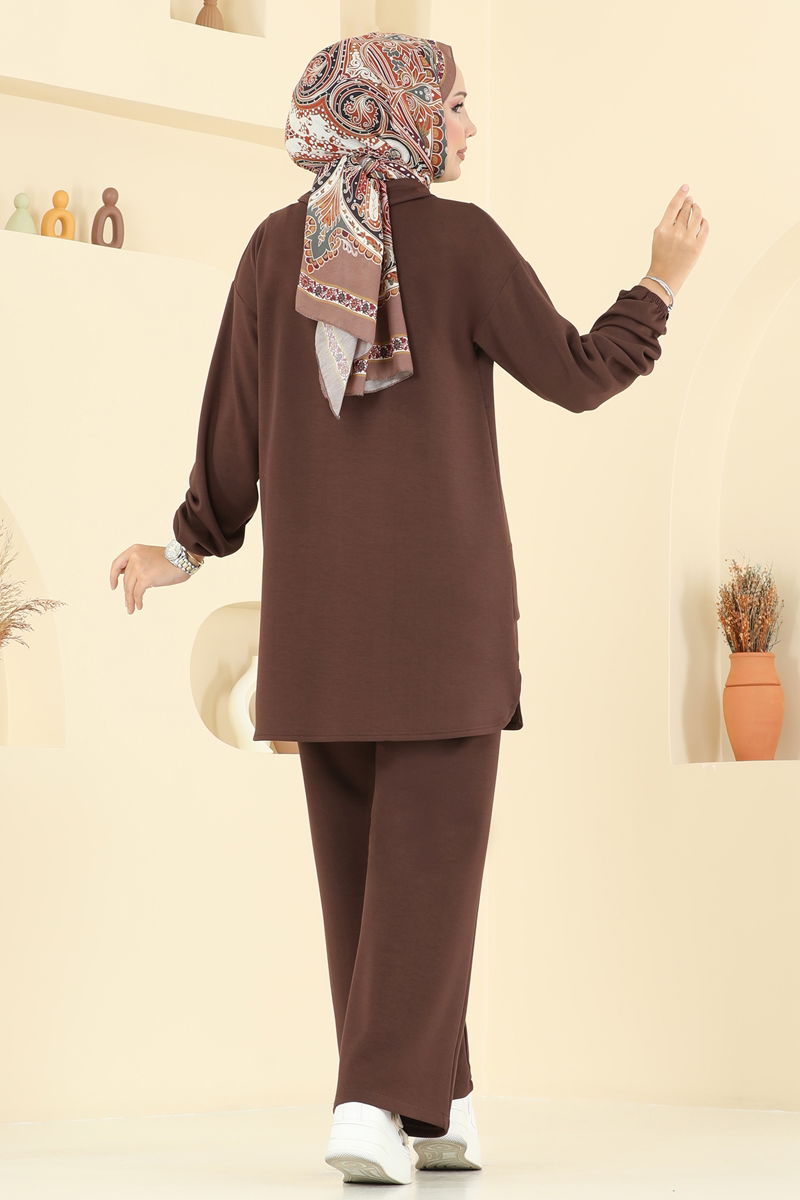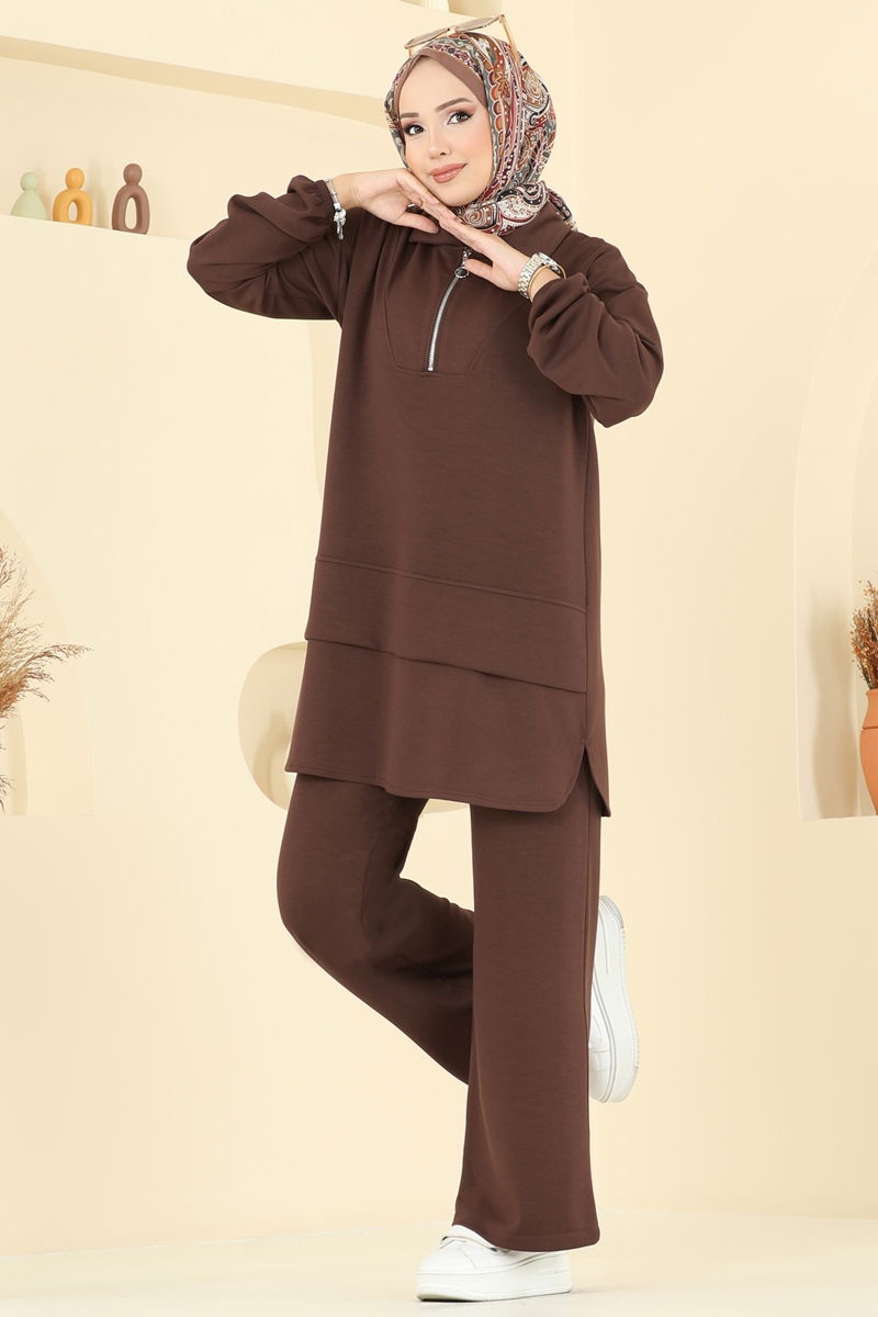 Yarım Fermuarlı Modal Kumaş Takım 5017HBS856-MS Kahve