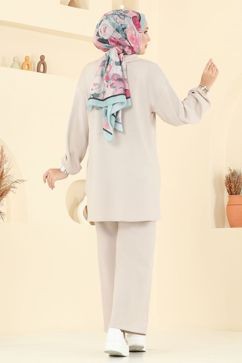 Yarım Fermuarlı Modal Kumaş Takım 5017HBS856-MS Taş