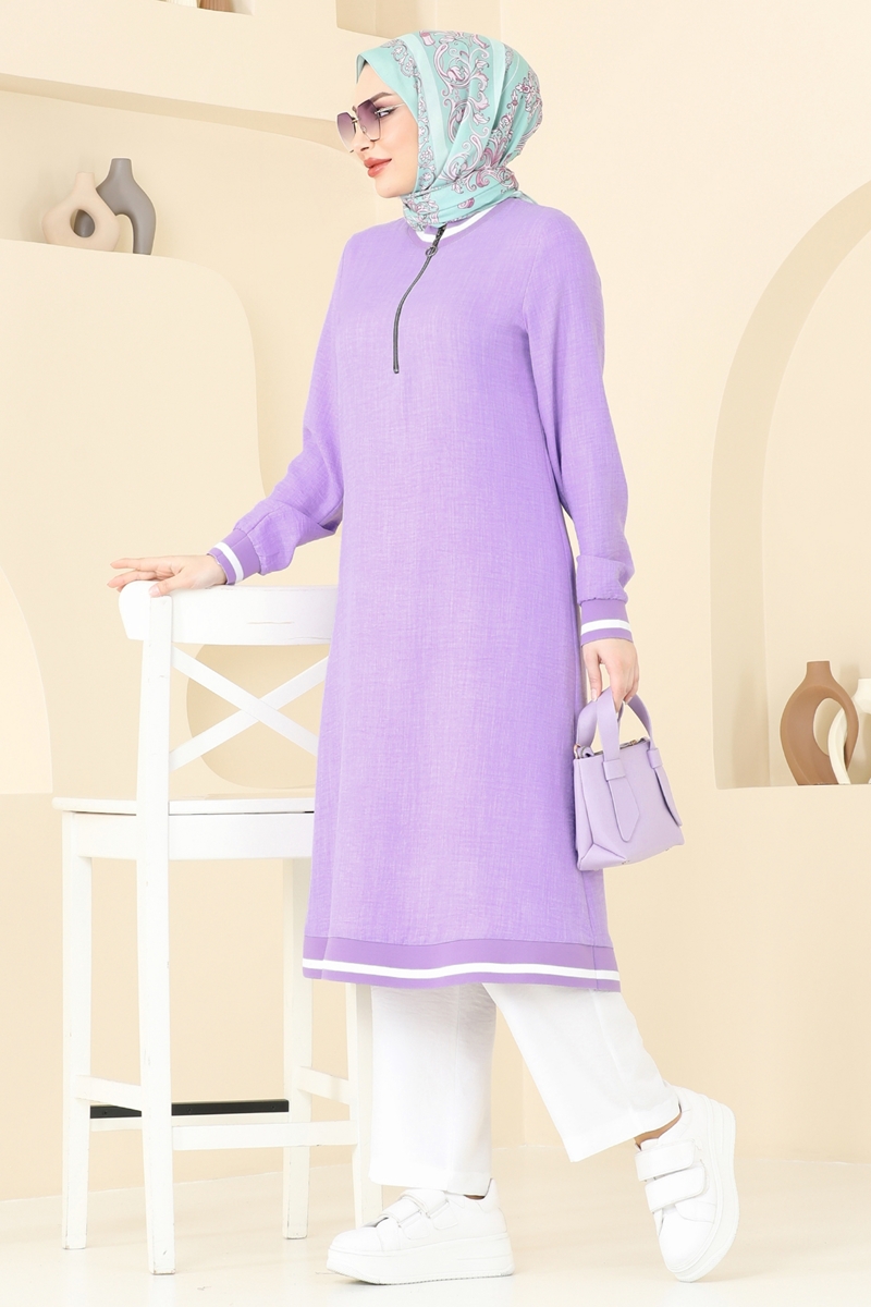 Yarım Fermuarlı Takım 9022S324-MS Lila&Ekru