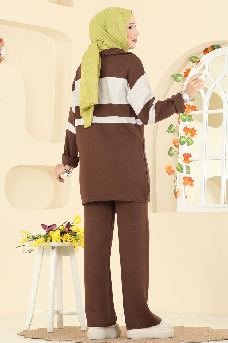Yarım Fermuarlı Triko Takım 2738AYD574-MS Kahve