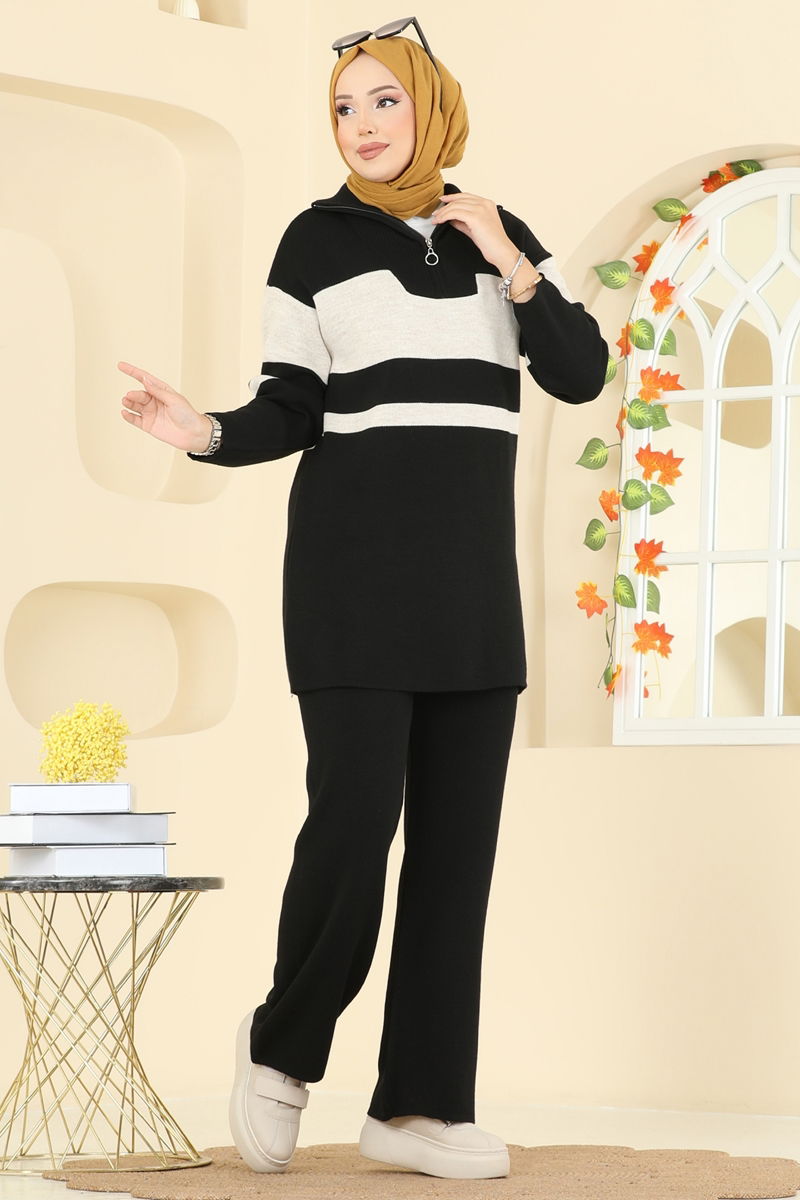 Yarım Fermuarlı Triko Takım 2738AYD574-MS Siyah