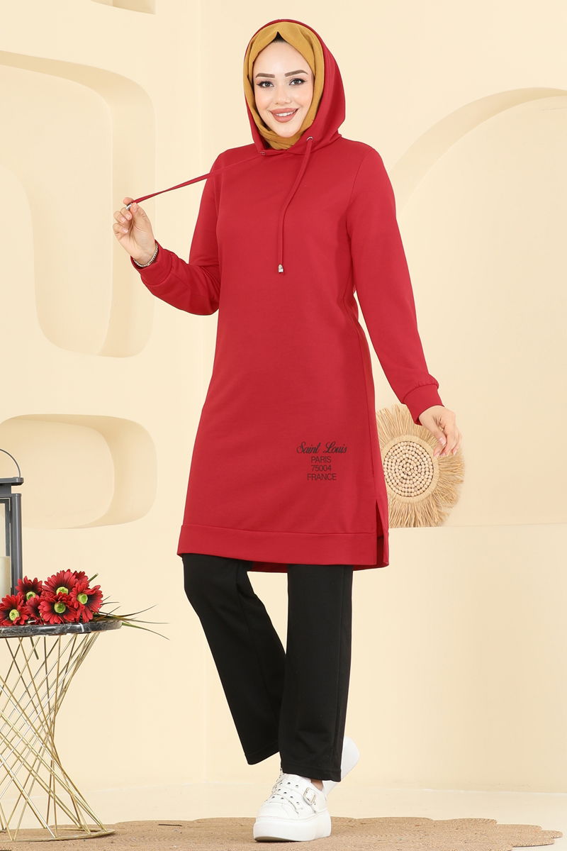 Ürün Detayları : Bu ürün yeni sezon tesettür modasına uygun olarak tasarlanmıştır. Yaka kısmında aktif bağcık bulunmakta, kapşon ise sabittir. Kenarları yırtmaçlı tunik tasarımı, Astarı yoktur. Yazı baskıları kalıcıdır. Kapşon genel tasarıma entegre edilmiştir. Pantolonun beli lastiklidir. Pantolon manşetleri lastikli olarak tasarlanmıştır.Resim çekimleri sebebiyle renk tonlarında farklılıklar olabilir.