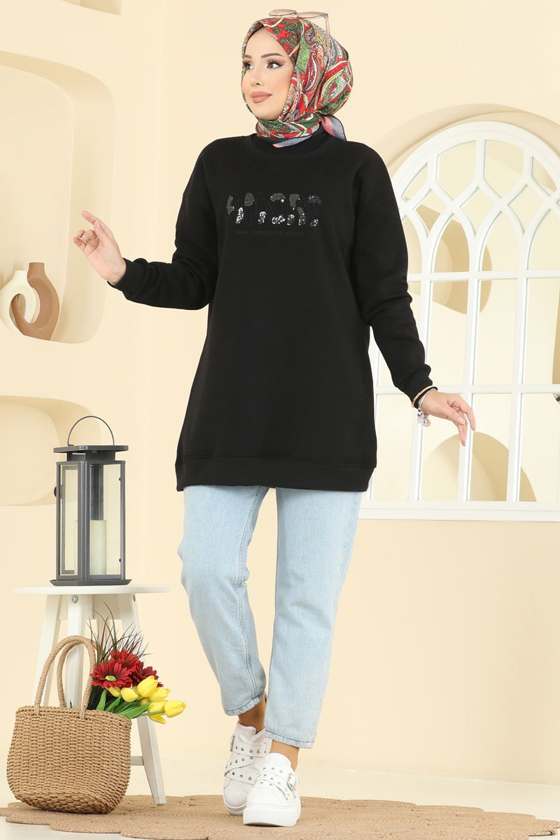 Yazı Detaylı Üç İplik Tunik 5279TEG847-MS Siyah