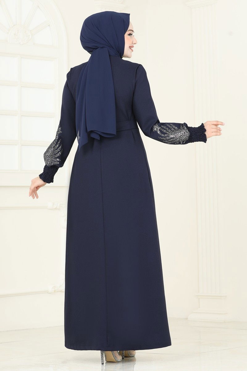 Ürün Detayları: Tesettür moda tasarımlarının modern yaklaşımı ile üretilmiştir. Bisiklet yaka tasarımına sahiptir. Astar kullanılmamıştır. Ürünün arkası fermuar kapamadır ve pullu ayrıntıları mevcuttur. Kemer ürüne eklidir ancak kullanımı opsiyoneldir. Kol uçları lastiklidir. Fotoğraf çekimi sebebiyle renk tonunda farklılık olabilir.