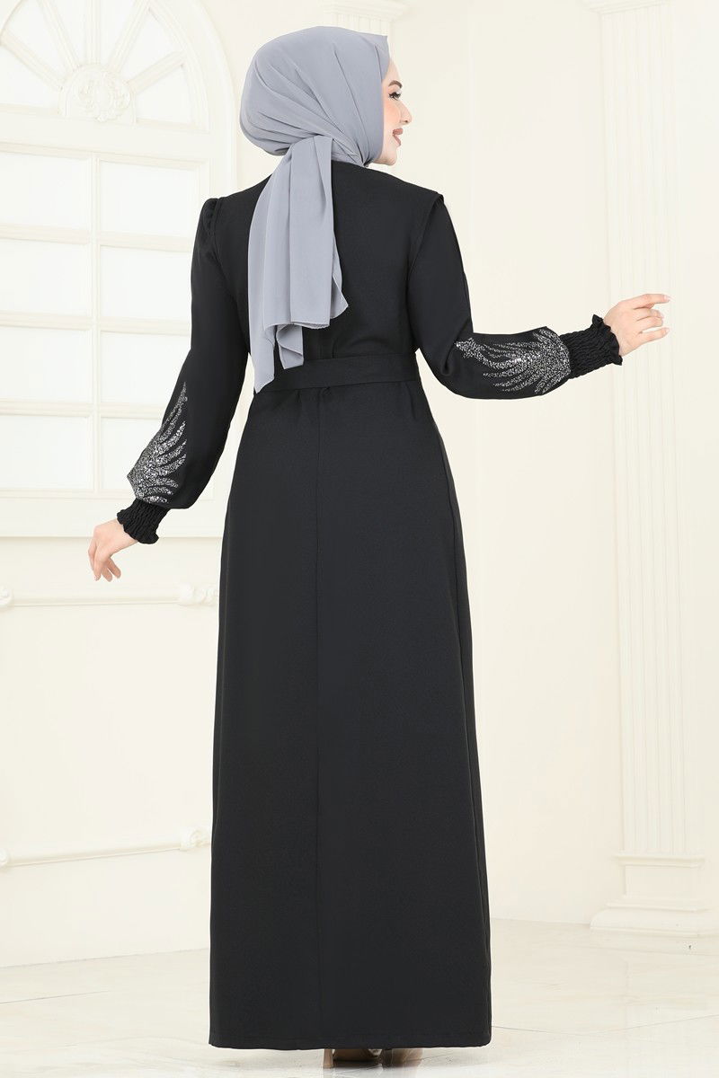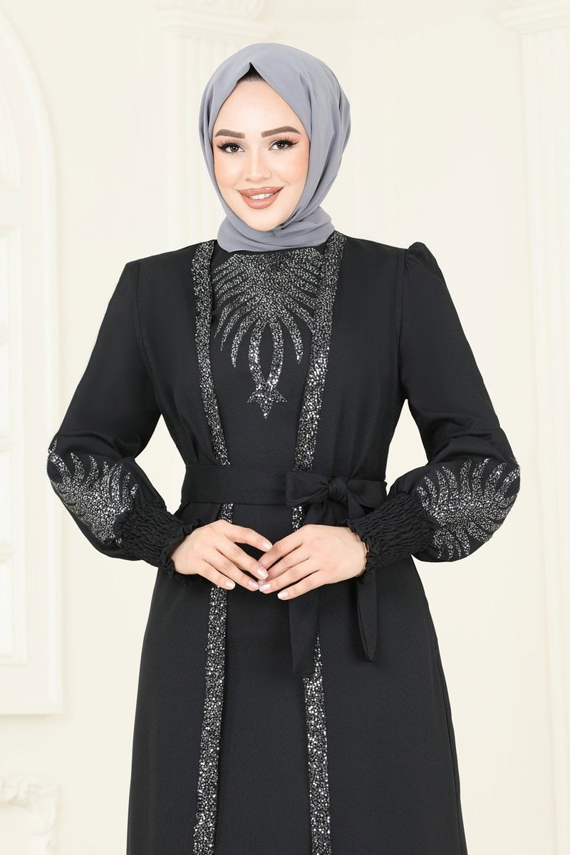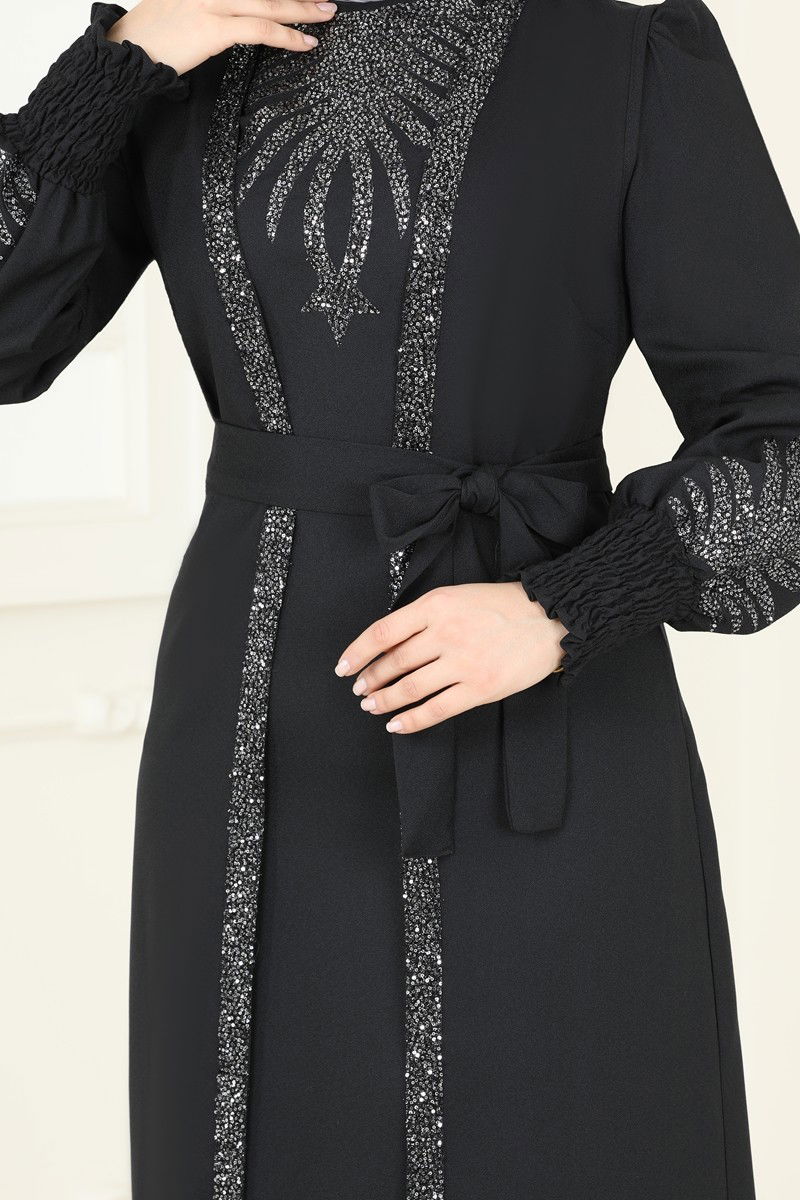 Ürün Detayları : Tesettür tarzına uygun modern tasarım. Yakası bisiklet tipindedir. Astarı bulunmamaktadır. Üründe arka kısımdan fermuar kullanılmıştır. Pul işlemeler eklenmiştir. Üründe yer alan kemer isteğe bağlı çıkarılabilir. Kol uçları lastikli yapıdadır. Çekimlerden ötürü renk farklılıkları olabilir.