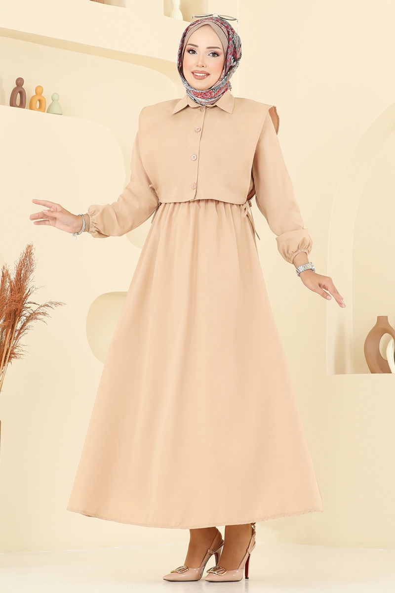 Yelekli Terikoton Elbise Takım 3059KTR750-MS Bej