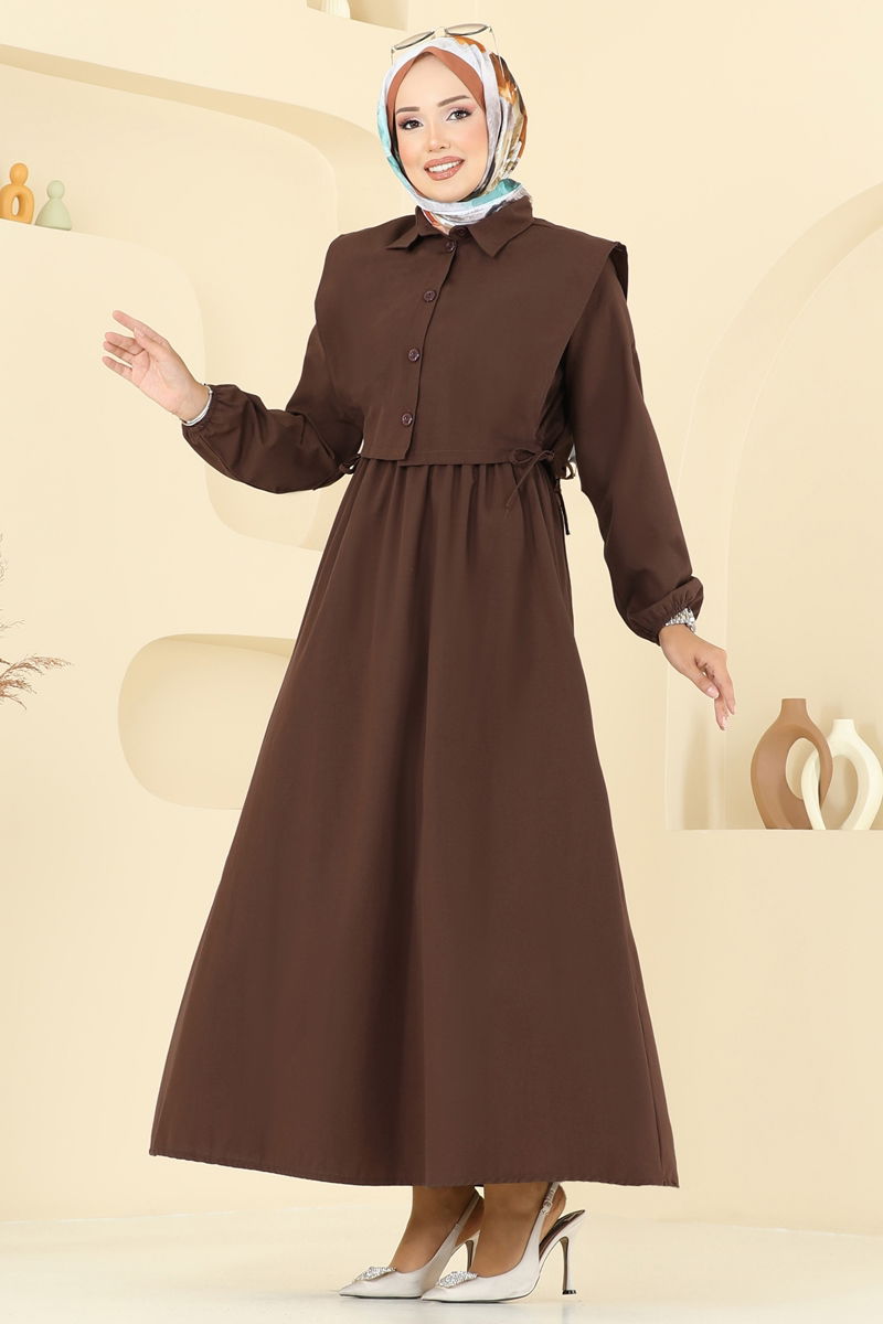 Yelekli Terikoton Elbise Takım 3059KTR750-MS Kahve