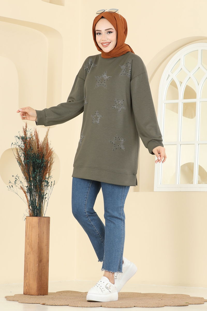 Yıldız Detaylı Modal Tunik 3225HBS856-MS Haki