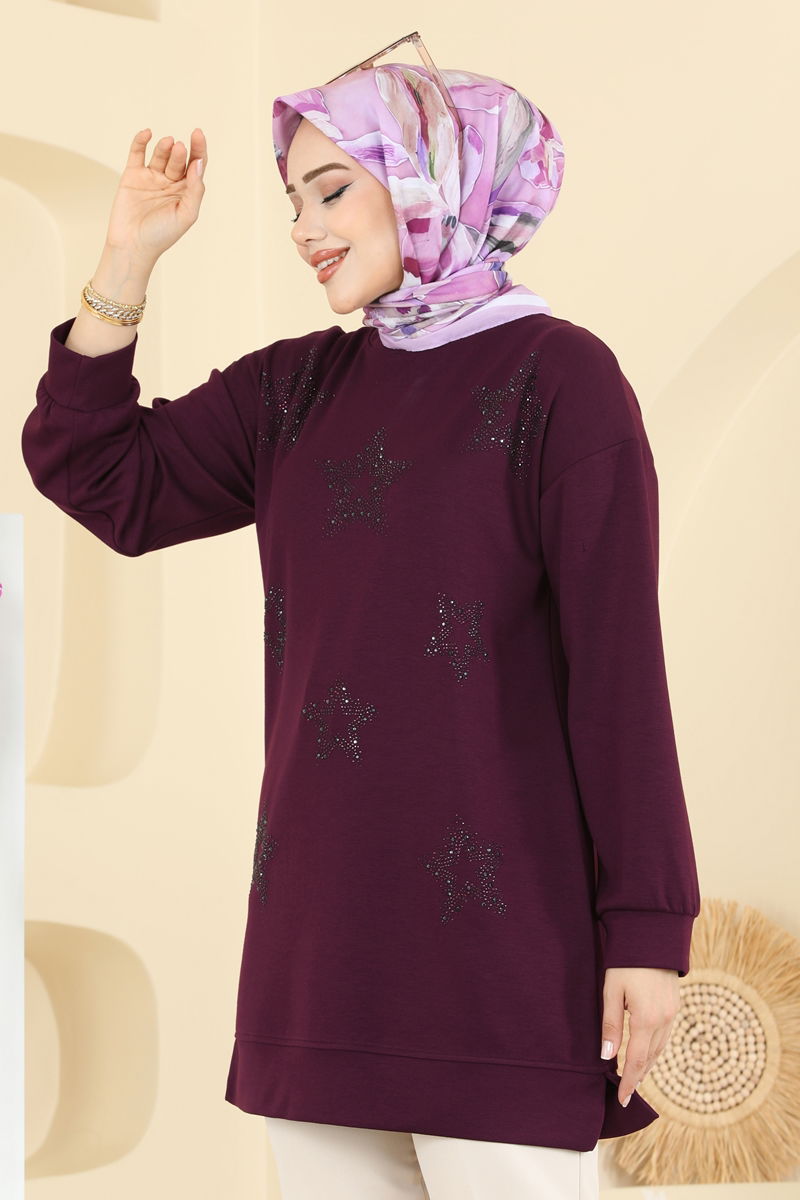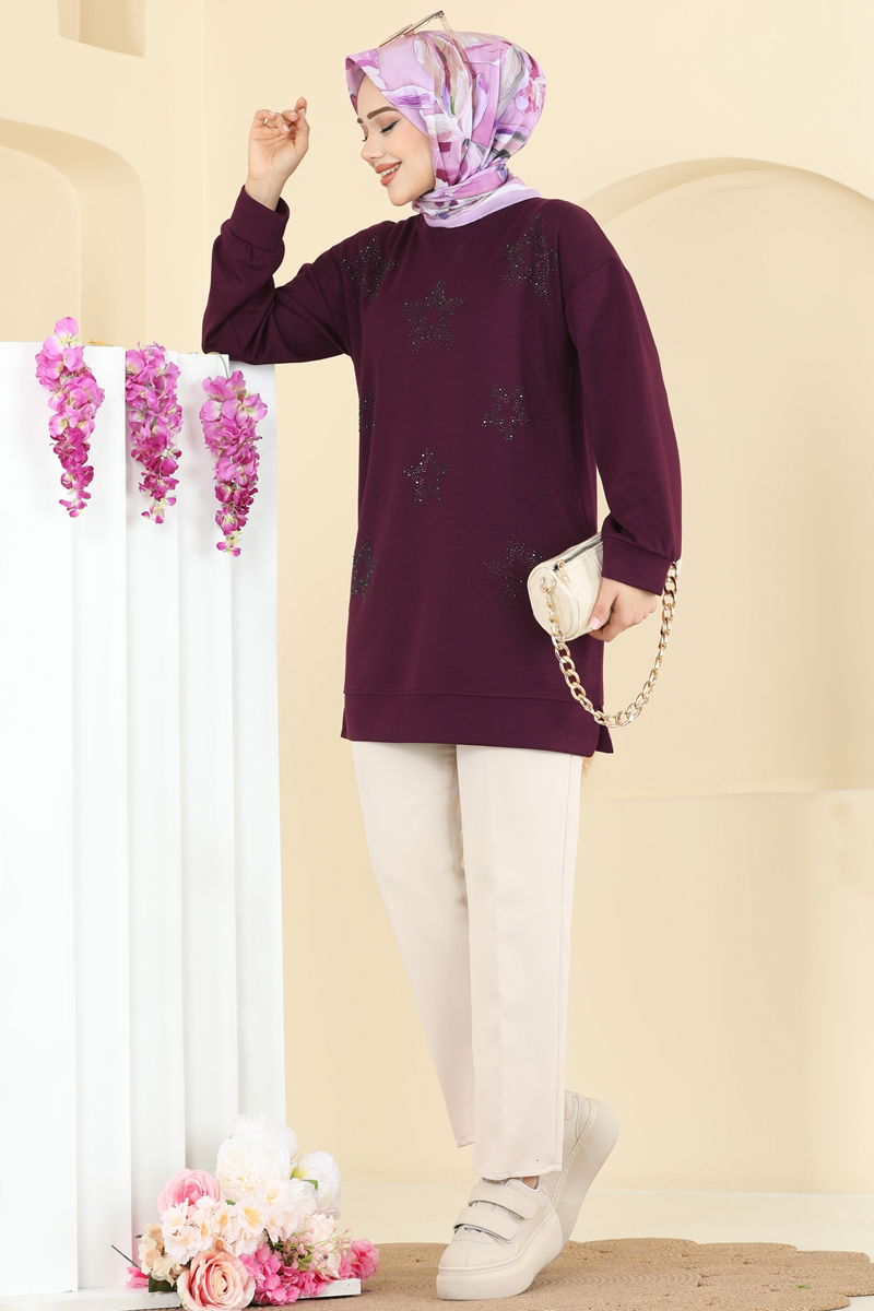 Yıldız Detaylı Modal Tunik 3225HBS856-MS Mürdüm
