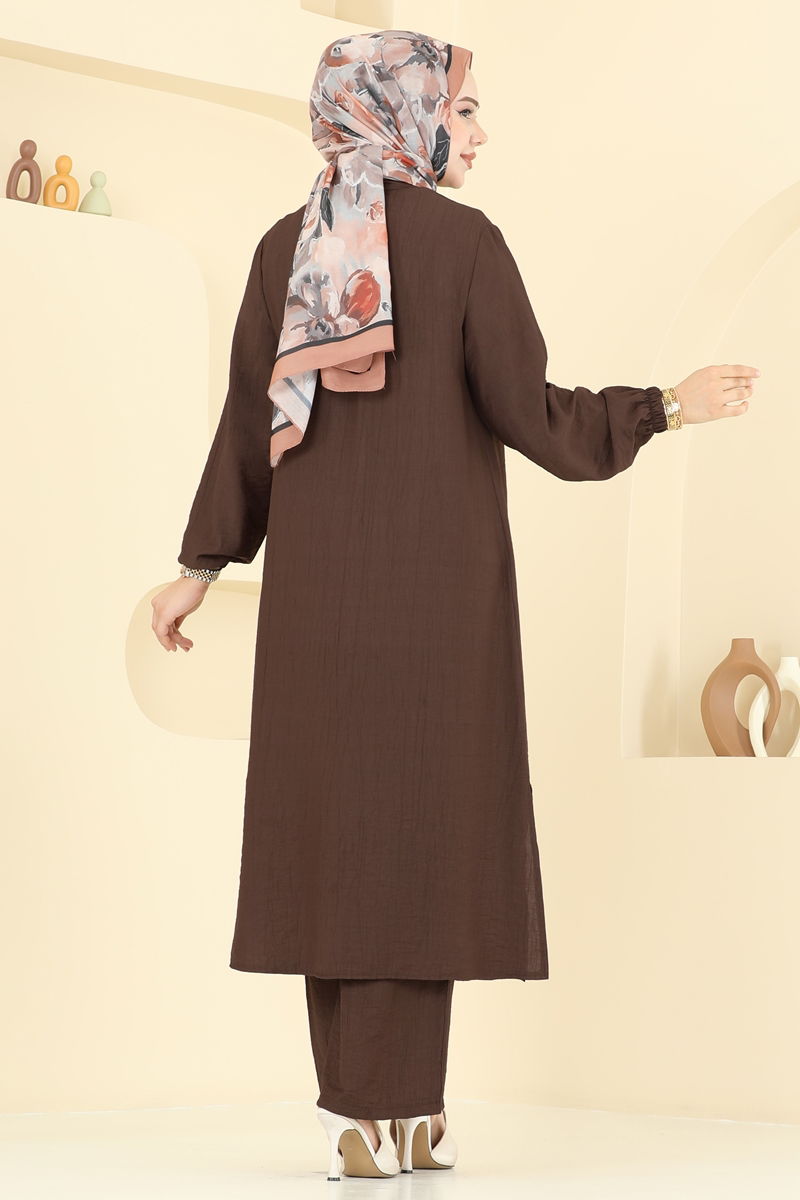 Yıldız Detaylı Tesettür Takım 449DVL817-MS Kahve