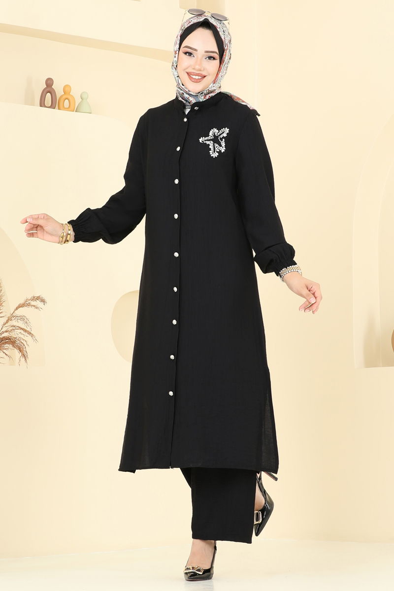 Yıldız Detaylı Tesettür Takım 449DVL817-MS Siyah