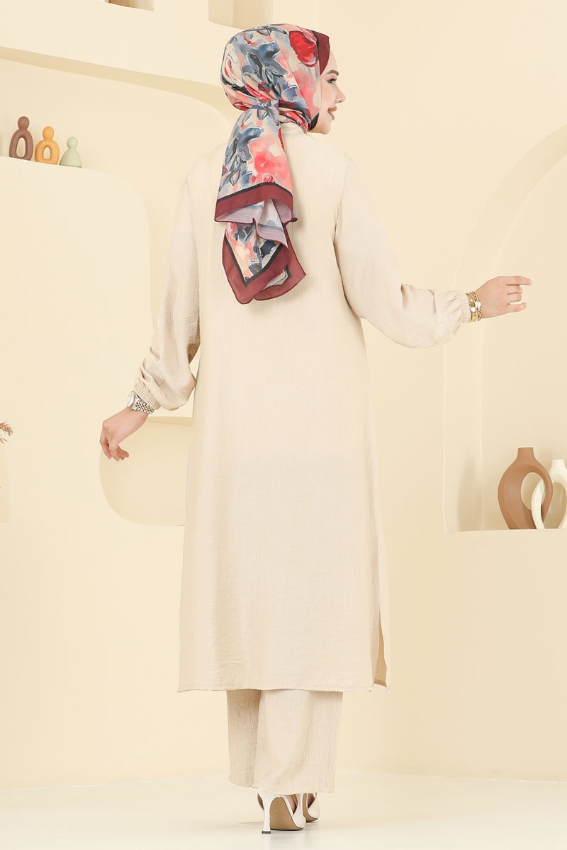 Yıldız Detaylı Tesettür Takım 449DVL817-MS Taş