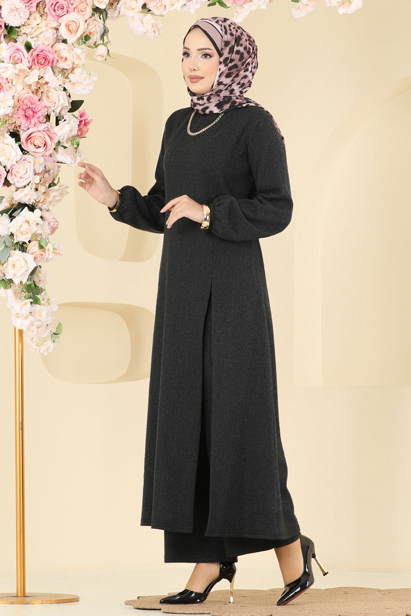 Yarık Ayrıntılı Balıksırtı Takım Antrasit Rengi