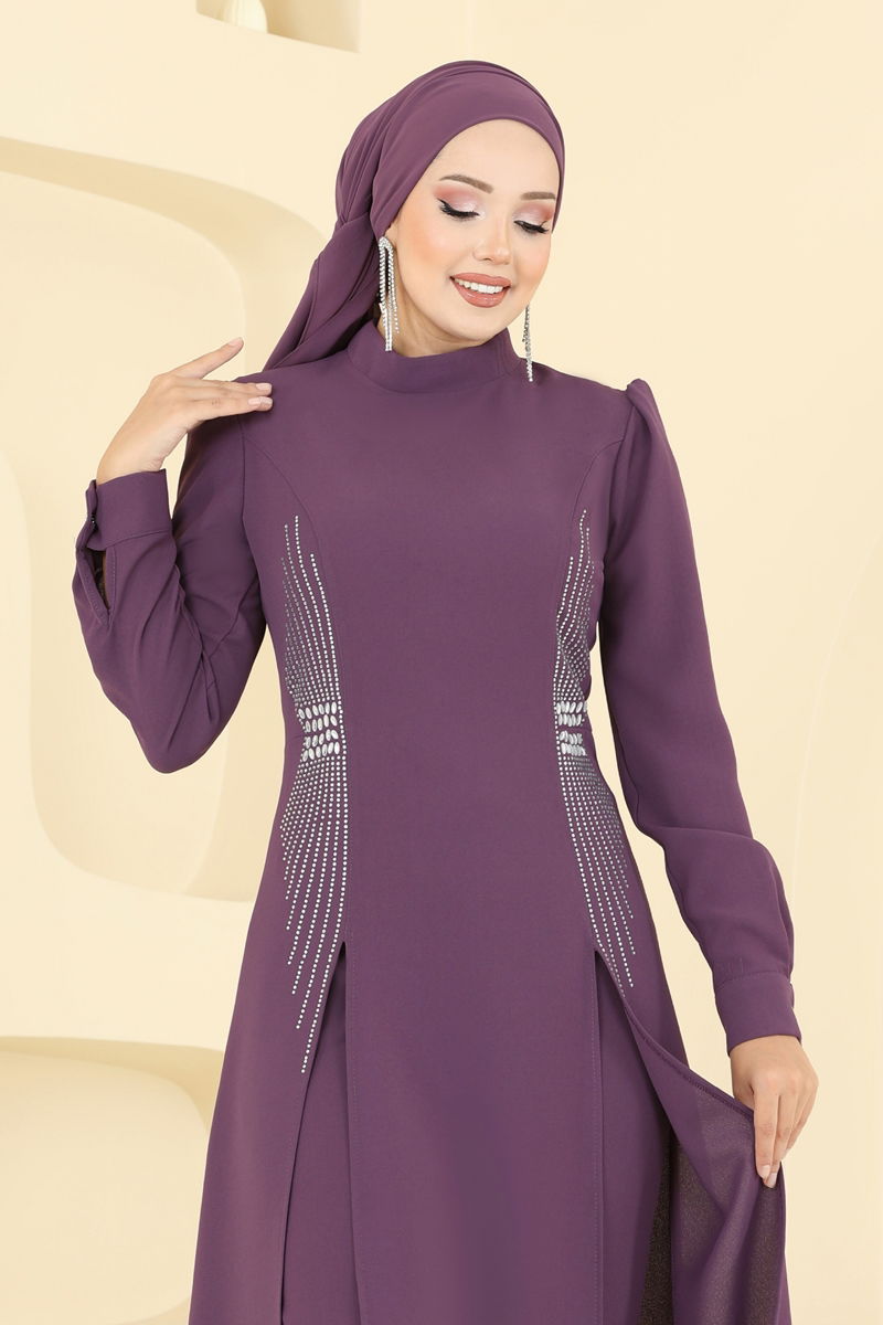 Yırtmaç Detaylı Şık Takım 2723SL432-MS Koyu Lila