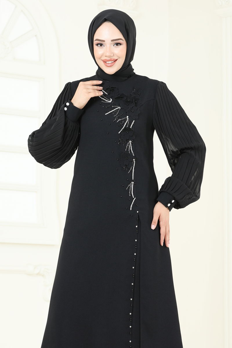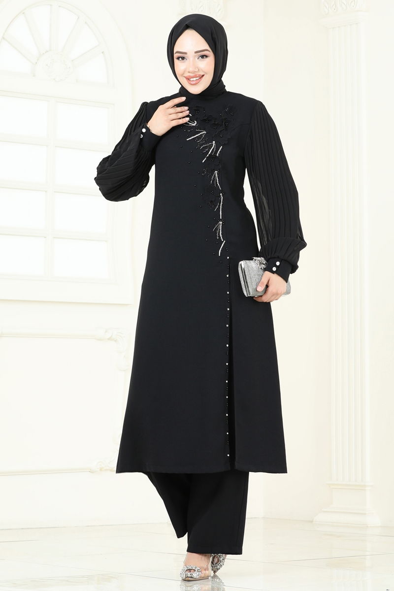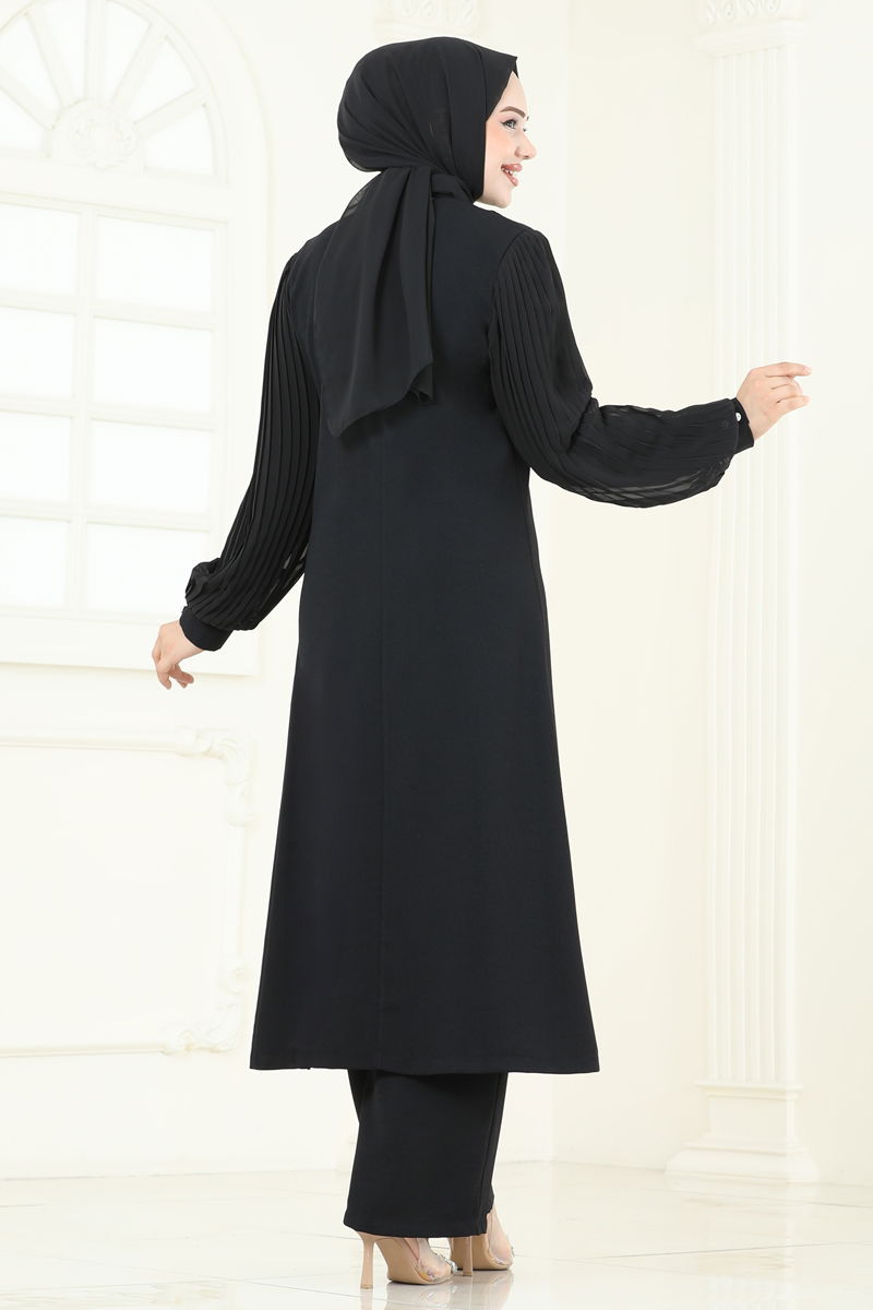 Siyah Renk Yırtmaç Ayrıntılı Şık Takım