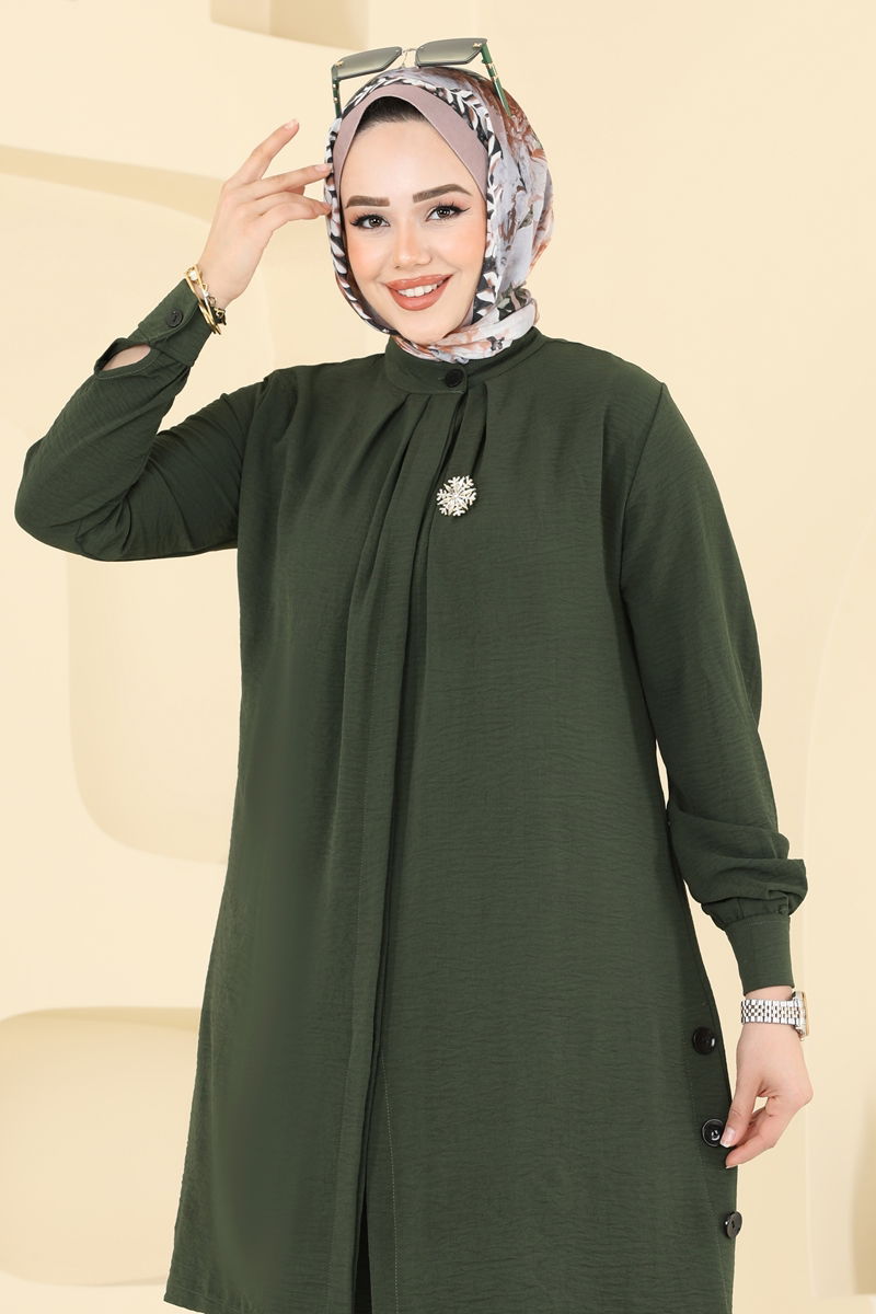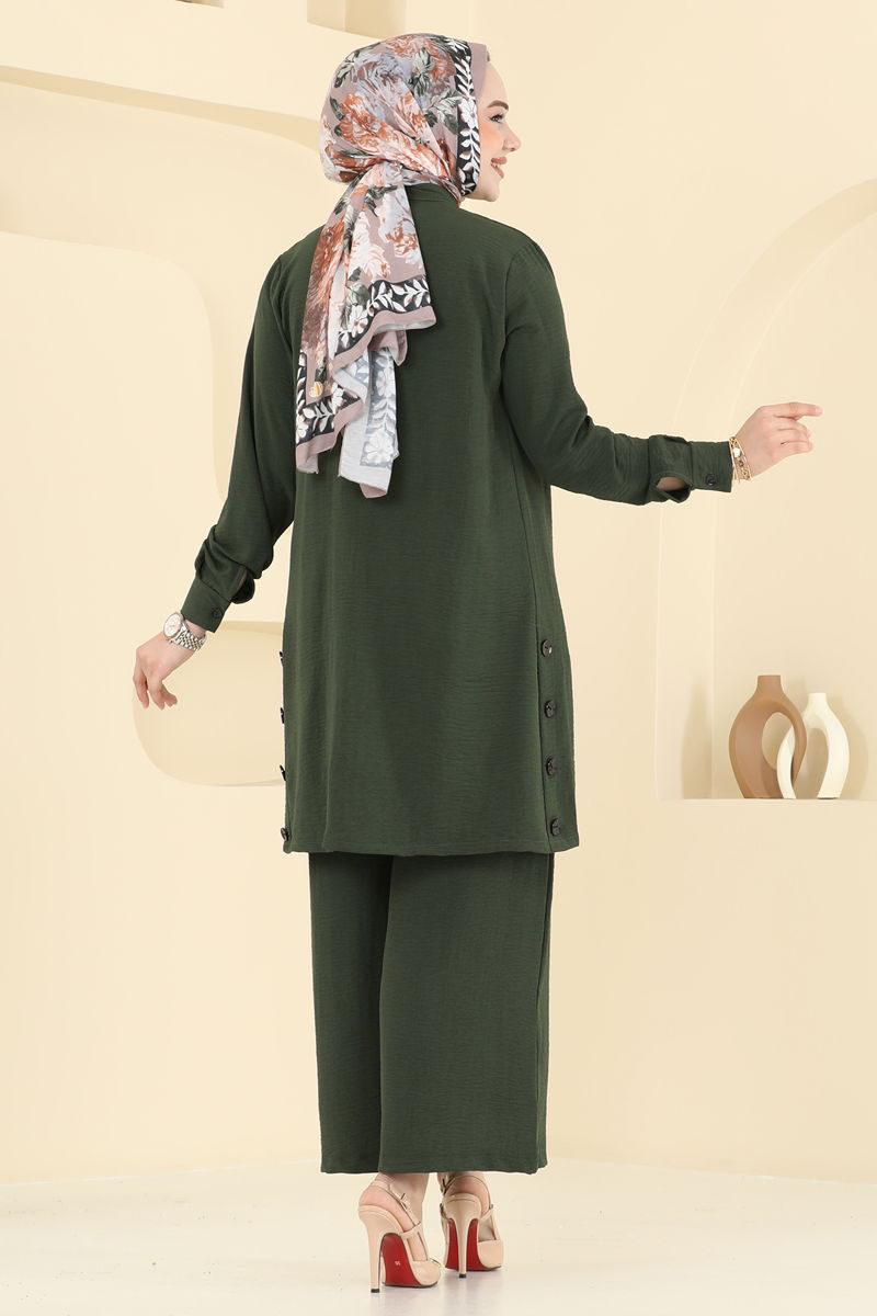Yırtmaç Düğmeli Tesettür Takım 3100HBS856-MS Haki