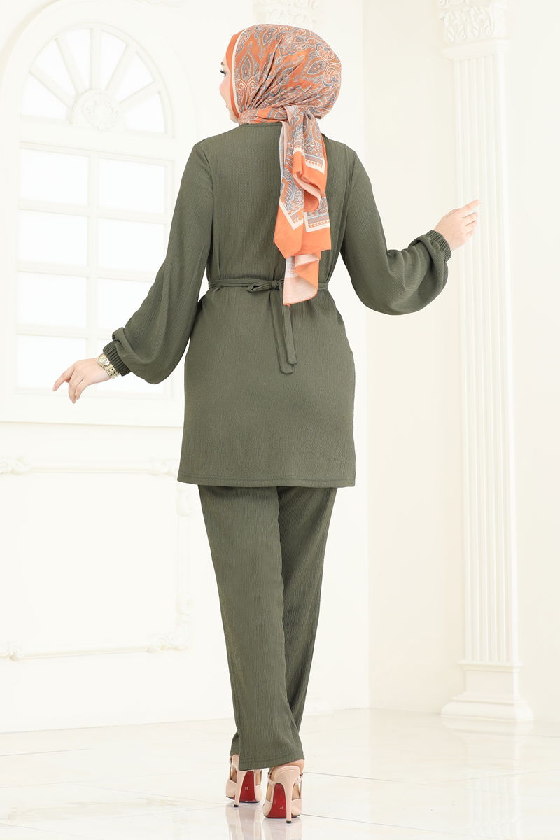 Zincir Kemerli Tesettür Takım 344DVL817-MS Haki